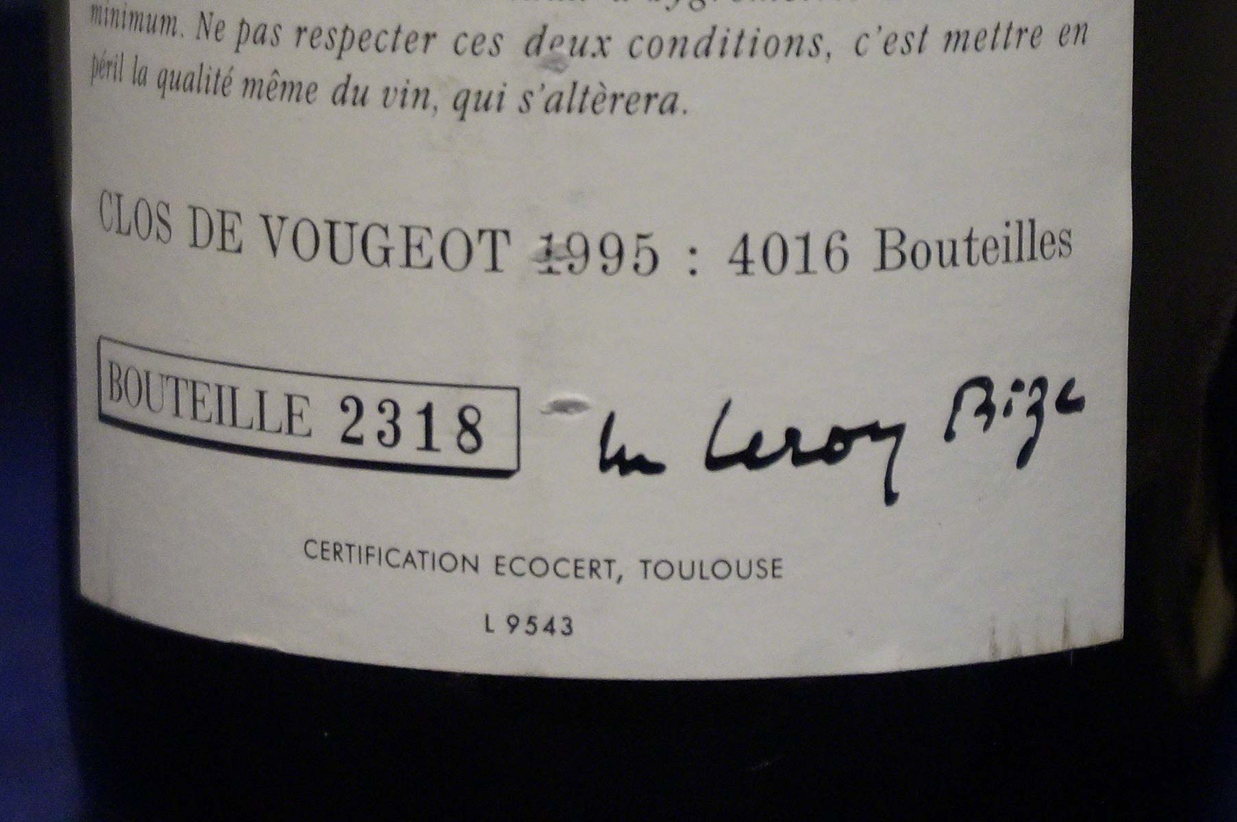1995 – Leroy Clos de Vougeot